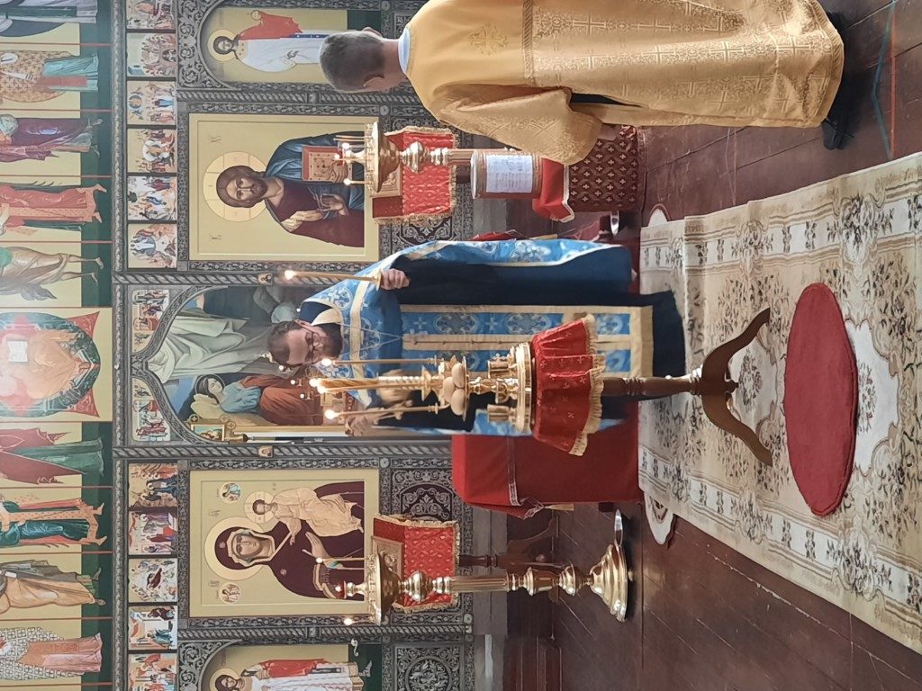 Накануне вечером настоятель храма иерей Евгений совершил Всенощное бдение с чином Похвалы Пресвятой Богородицы, где так же совершается вынос Плащаницы Пресвятой Богородицы.